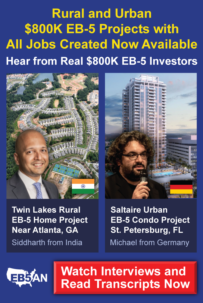 Rural and Urban TEA Regional Center EB-5 Projects at $800K.